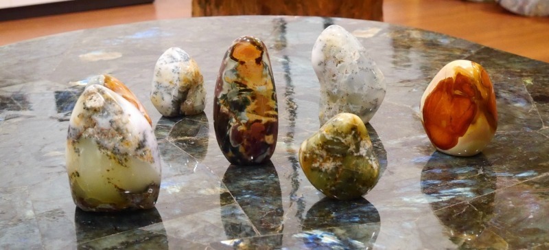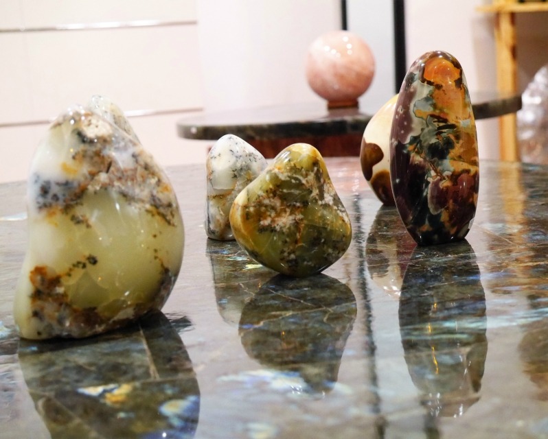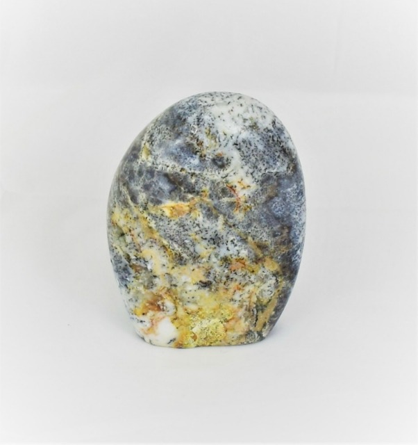 OPALE MOUSSE ou Merlinite SAGESSE, EQUILIBRE, HARMONIE Composition : SiO2, Nh2O ; dioxyde de silicium hydraté. De couleur claire, blanche ou jaune, avec des inclusions de dentrite. •Pierre de grande intuition, de clarté mentale et de prédiction (3e œil). Apporte calme et sérénité(chakra cœur). Favorise l’optimisme et permet de saisir le moment présent (chakra racine). •Pierre des gardiens du savoir des chamanes, des alchimistes, des grands maîtres du spiritisme, sa double couleur associe les vibrations spirituelles et terrestres, donnant accès aux mondes spirituel et chamanique. •L’opale mousse a un effet calmant, apaisant.Elle nous pousse à penser et à agir avec sagesse et amour. •Pierre délicate, absorbante, saisit les pensées et les sentiments, agit comme stabilisateur émotionnel. •Elle est considérée comme une grande pierre de chance : apportant prospérité et santé. •Guérit les vies antérieures, afin d’induire l’harmonie dans la vie actuelle. Équilibre le yin et le yang, les énergies masculines et féminines, le conscient et le subconscient, l’intellect et l’intuition.